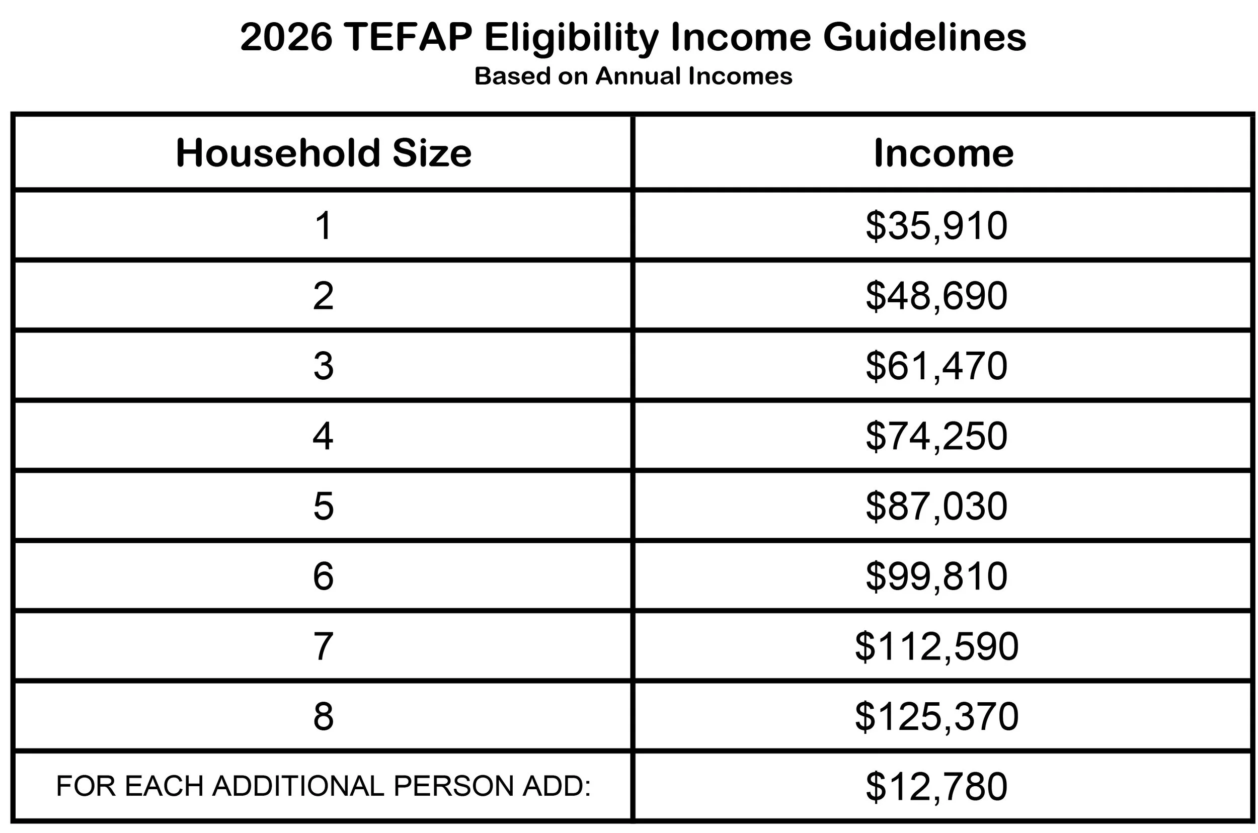 Below is a comparison of the income eligibility thresholds for TEFAP vs. SNAP.